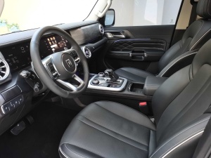 Equipped with a dual-screen design featuring a 12.3-inch full LCD instrument panel and a 12.3-inch central control screen, the interface is clear and the functions are abundant. It supports features such as car networking, navigation, audio and video entertainment, mobile phone interconnection (CarPlay/CarLife), voice control, and more. The car system boasts high fluency and can display off-road data in real-time (altitude, gradient, inclination angle, four-wheel drive status), meeting off-road needs. Equipped with a leather multi-function steering wheel with heating and shift paddles, it provides a full grip and convenient control!